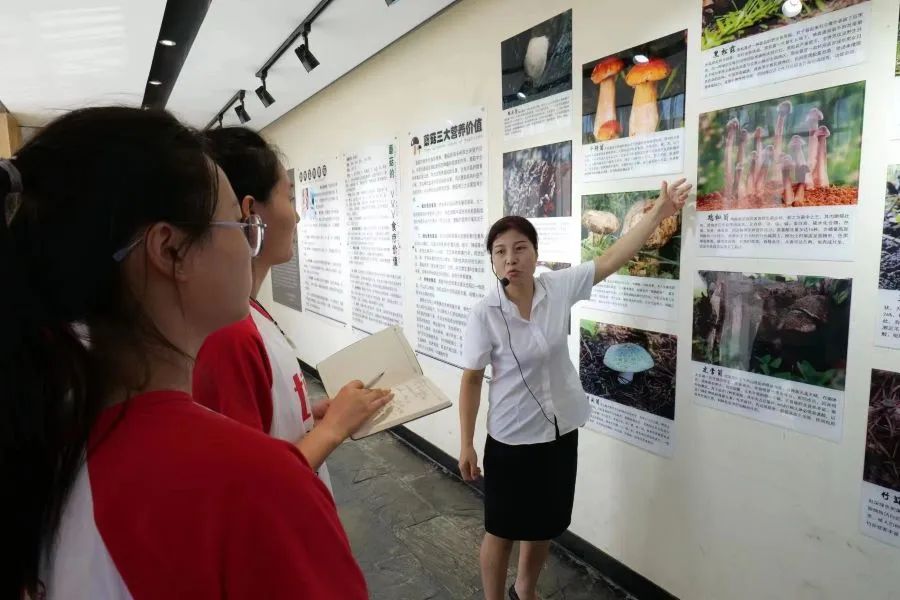 在完成对接工作后,7月24日9:00解天华理事带领实践团队抵达陕南石叁珍蘑菇宴餐饮博物馆,解天华会长为实践队员详细的讲解了博物馆的创立时间,负责人;野生蘑菇在全球和全国的分布;以及馆内整体的设计理念是按照菌类生物的生长环境排列;并罗列了许多不同的窗口为团队成员展示。