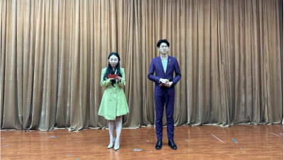 在第一环节里的个性展示中,同学们发挥各自优势,朗诵、配音、脱口秀和模拟主持等等各种形式应有尽有。每一位选手朝气焕发,准备充分,渴望用声音展现风采,用朗诵传递文化。