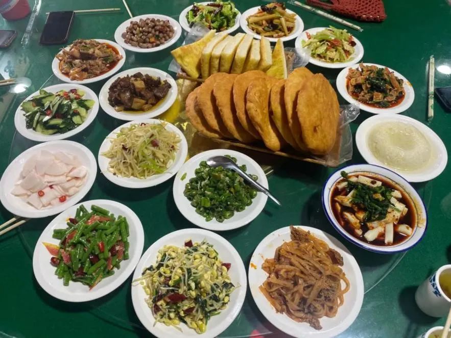 农家宴是中国传统的饮食文化之一,它融合了农耕文化与地方特色,代表了当地人民对美食的热爱与追求。七月二十一日,爱心医疗志愿服务队开展“古镇迷影,味蕴芬芳”活动,队员们怀着好奇的心情前往当地玲玲农家宴,迎接他们的是一道道令人垂涎的美食。
