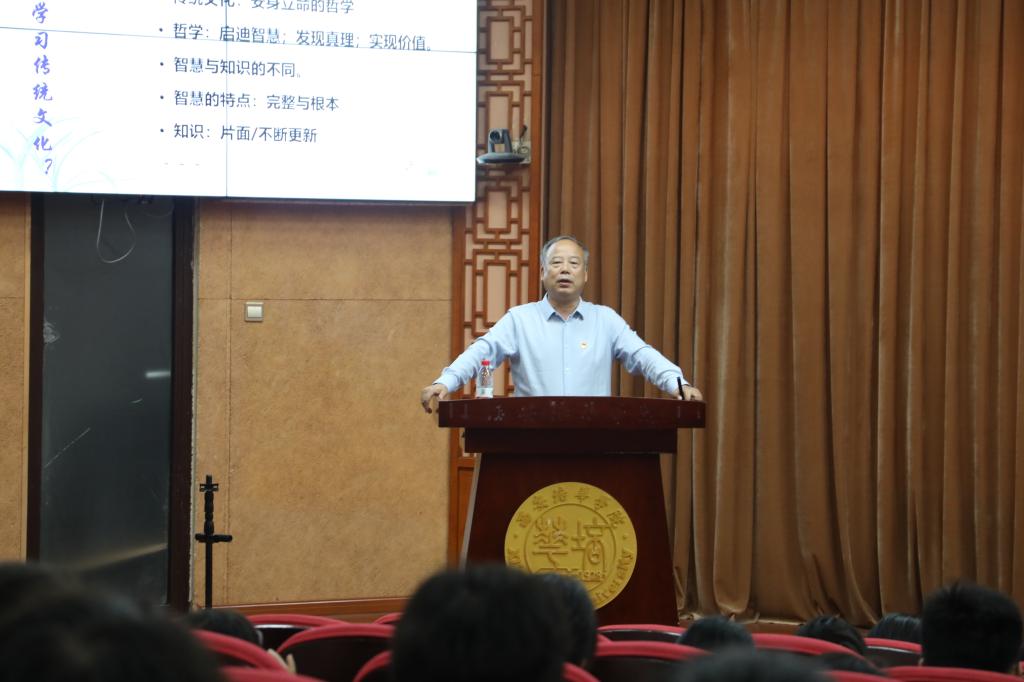 从庄子,孔子等圣贤到《易经》,《道德经》等国学经典,罗书记结合自身经历用幽默的语言和丰富的国学知识,为现场师生深入浅出地讲述了学习中华优秀传统文化的重要性和必要性。他勉励广大师生在传承优秀传统文化中做一个正直有学问的人,坚定理想信念,增强四个自信。同时还送给现场师生四句话: