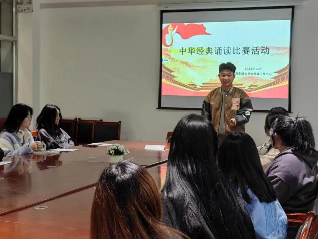 中华“经典”是铸牢中华民族共同体意识的特有资源,“经典”铸造了中华民族特有的精神气质、文化基因和基本走向,是中华文化的根本、源头和魂魄所在,对增强中华文化的凝聚力和引领力、构筑各民族共有精神家园、铸牢中华民族共同体意识具有重大意义。为进一步丰富同学们的课余文化生活,弘扬传统文化,推广普通话,建筑与艺术设计学院学生党建工作中心于11月20日在汇知楼举办了“中华经典诵读”活动。
