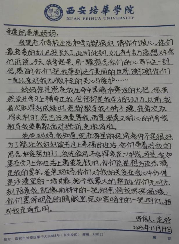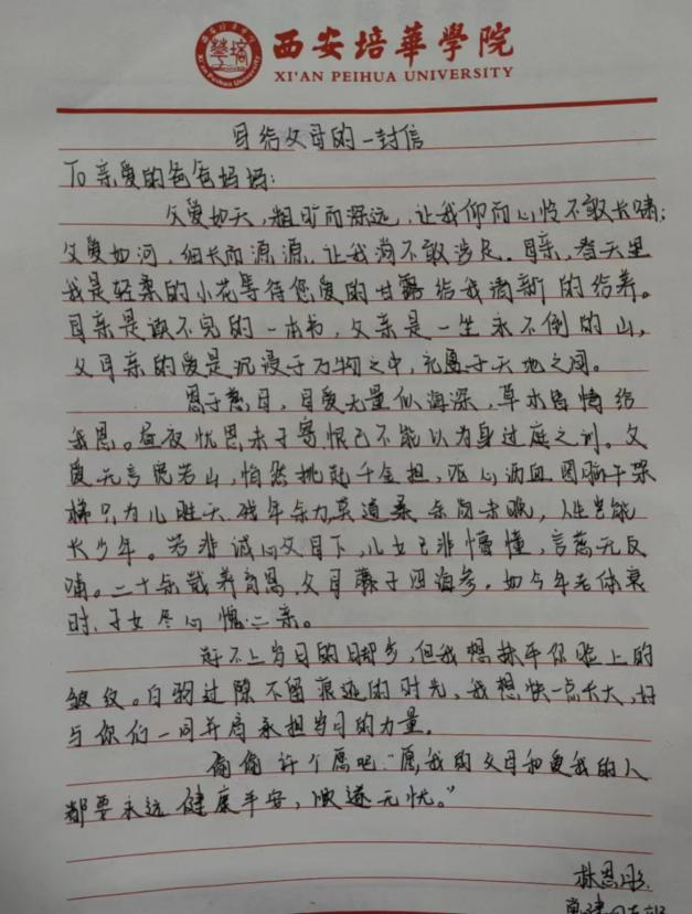 活动伊始,在活动部负责人王晗佳同学的有序组织下,同学们聚集在一起,将心中不曾与父母倾诉过的话语汇集成文字,执笔写下自己对父母的满腔感激与爱意,写成一张张满含深情的书信。