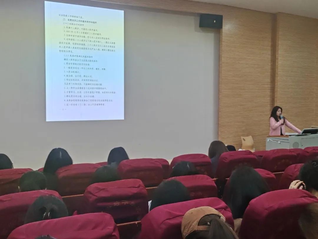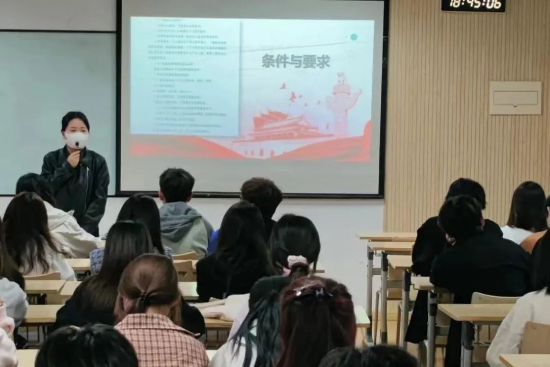 辅导员们在班级为同学们介绍了团员申请加入中国共产党的基本条件,解释了关于申请入党到入党积极分子的确定、培养到发展对象的确定、考察再到预备党员的接受及转正的相关流程,同时也向同学们讲解了入党积极分子的考核标准。