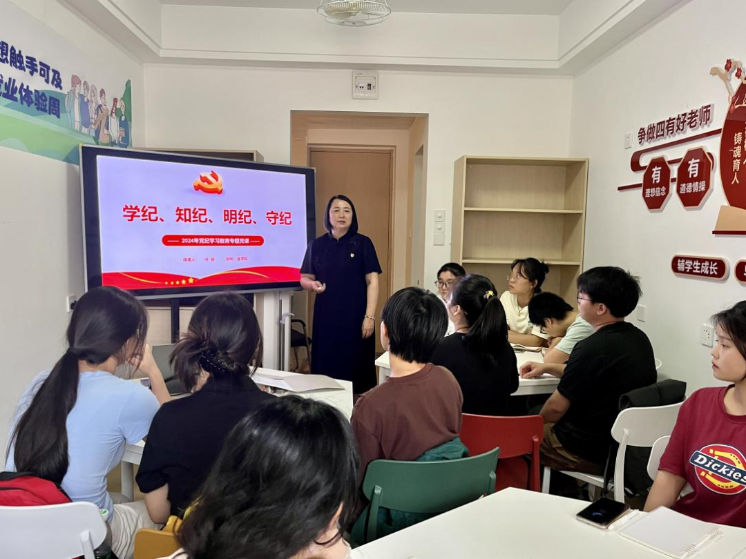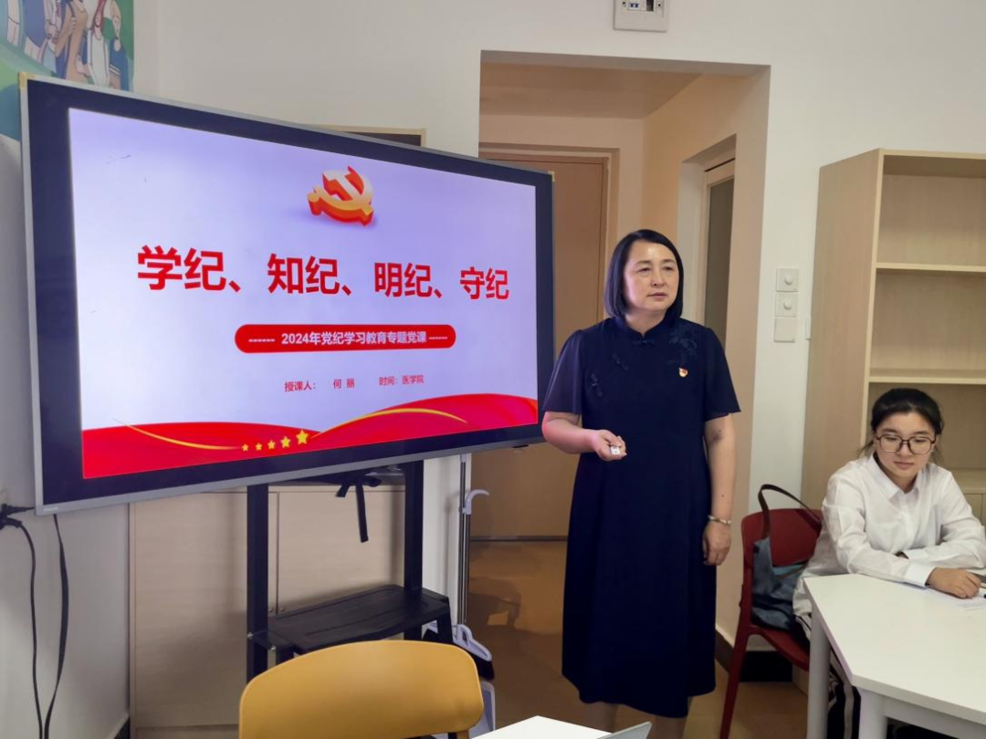 为深入学习贯彻习近平总书记关于党纪学习教育的重要讲话和重要指示精神,推动党纪学习教育走深走实。5月27日,医学院学生第二党支部邀请党委副书记何丽在至善社区7号公寓导师工作室,以《学纪、知纪、明纪、守纪》为题,为学生党员和入党积极分子上了一堂精彩生动的专题党课,会议由学生第二党支部书记冯贝主持。