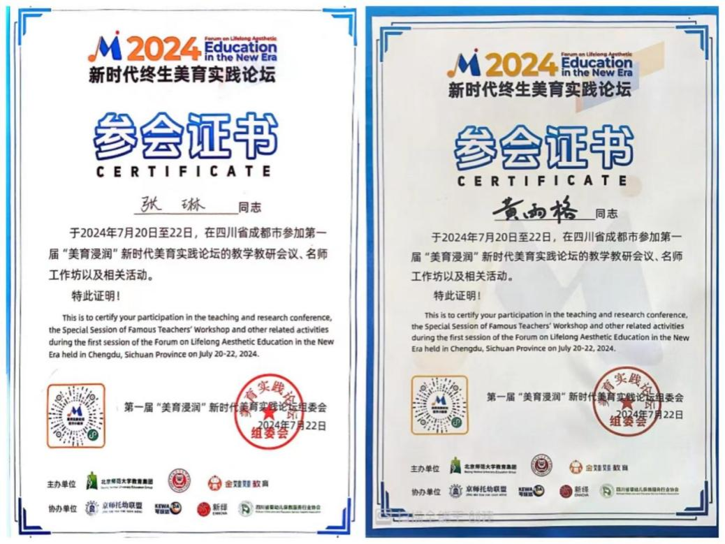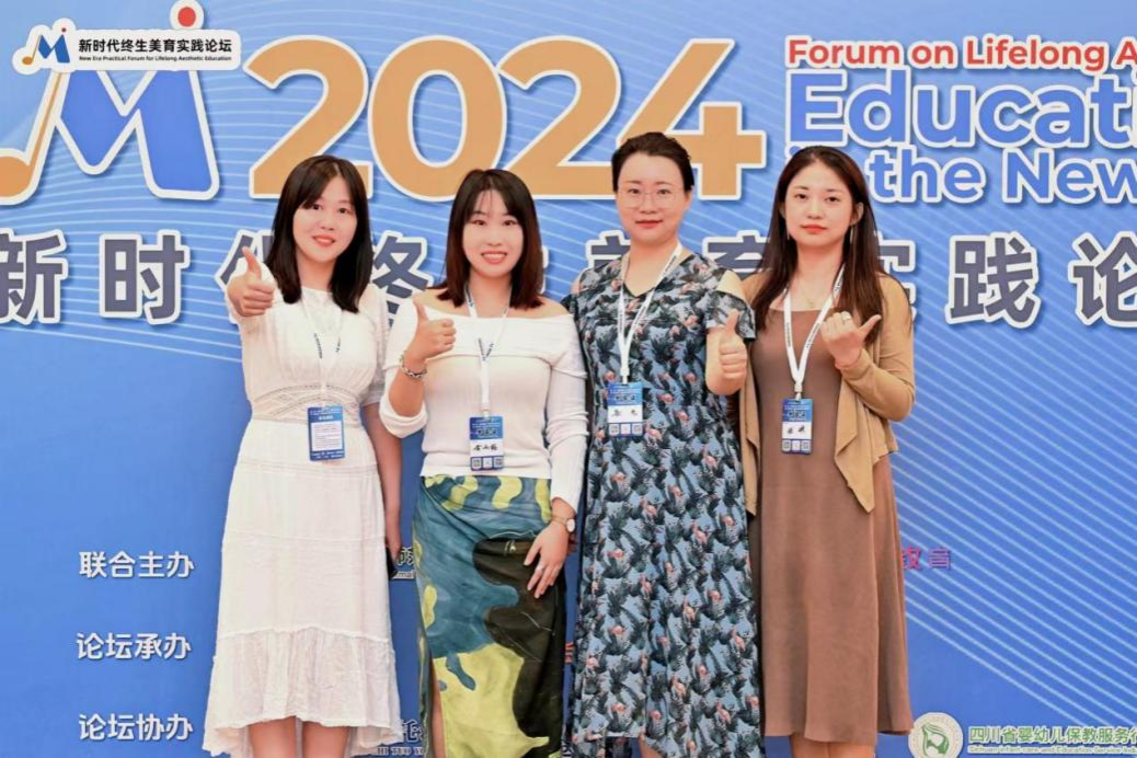 2024年7月20-22日,由北师大教育集团、厦门大学出版社、金娃娃教育联合举办的“美育浸润”第一届新时代终生美育实践论坛在成都举办。人文与国际教育学院学前教育系音乐组教师王斯文、黄雨格、岳光、张琳老师参加了本次论坛。著名音乐教育家、人民音乐出版社原社长吴斌教授;中央音乐学院原副院长、音乐心理学、教育学家周海宏教授;北京师范大学教授、博导周星教授;四川音乐学院教授,硕(博)士生导师雍敦全教授以及中国音协奥尔夫专委会专家莅临论坛。来自全国各地关注艺术教育的大中、小学艺术教育教师、艺术教育从业者300余人参加本次论坛。
