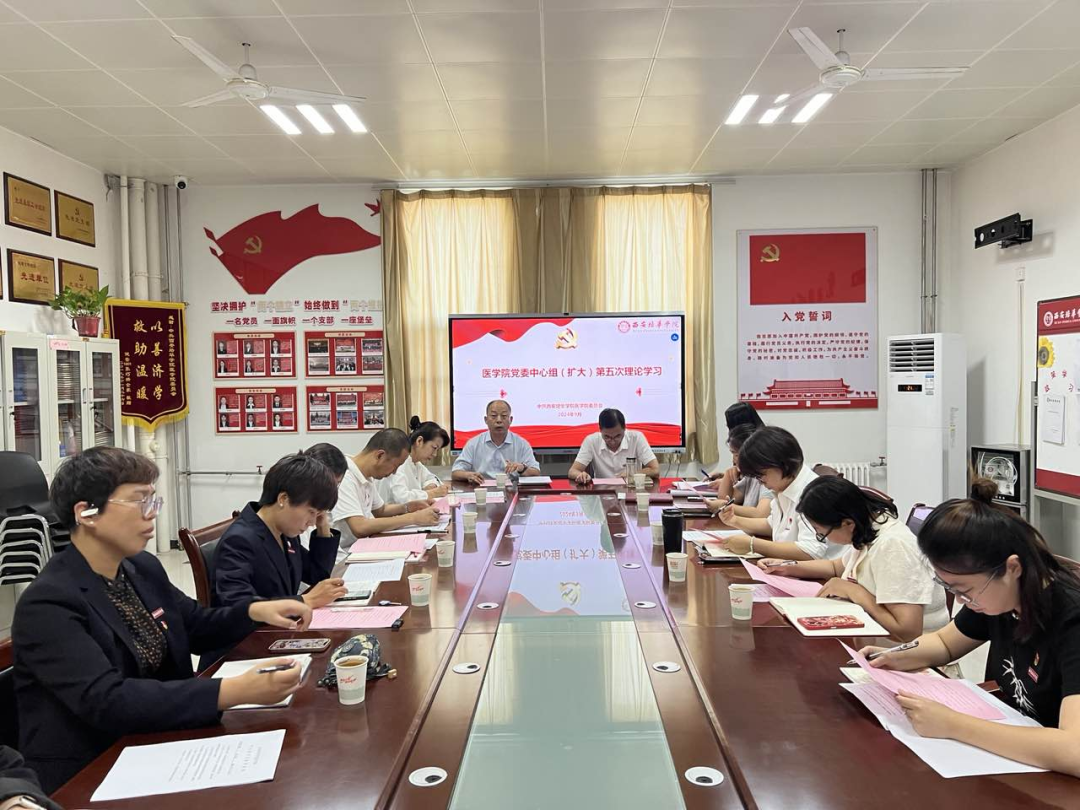 9月12日上午,医学院党委在至善楼8330党员活动室举行了2024年第五次理论学习中心组(扩大)会议,医学院院长扈国栋、党委书记兼行政副院长史立军、教学副院长王菊宁、科研副院长别蓓蓓和学院党委委员、各党支部书记、副书记参加了学习,会议由党委书记兼行政副院长史立军同志主持。
