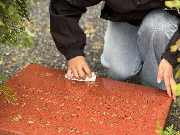 在革命烈士陵园。大家小心翼翼地擦拭墓碑拂去碑身尘埃,指尖轻抚镌刻的烈士姓名与事迹,在庄重的实操中感受英烈们为理想信念挺身而出的无畏气概,让红色缅怀从聆听走向践行。