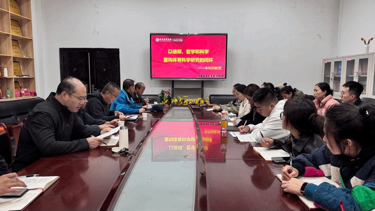 2025年10月22日下午,体育学院特邀科研管理中心副主任朱利民教授开展“体育学院大讲堂——以信仰、哲学和科学重构体育科学研究的闭环专题讲座。本次讲座在体育学院会议室举行,体育学院行政副院长马德厚主持,体育学院院长王志强、教学副院长张锦锦及全体教师共同参加。
