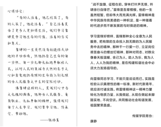雷锋精神,人人可学,奉献爱心,处处可为。用行动向雷锋致敬,用自己最真挚的情感传承和弘扬伟大的“雷锋精神”。致敬全体防控人员,他们的优秀事迹是我们当代青年对于“雷锋精神”的最好诠释。哪里有困难,哪里就会有雷锋青年。