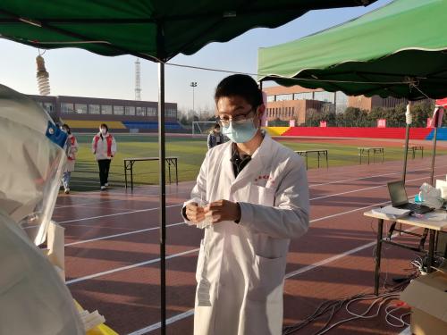 返校后,她利用课余时间连续学校疫苗接种和核酸检测志愿服务活动,克服多重困难,在高温下进行个人信息登记、协助医生完成注射、核酸采样、信息录入等,树立了好的榜样。