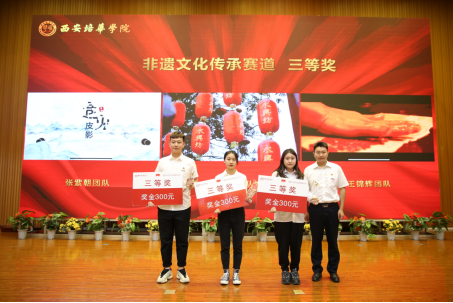 西安培华学院党委书记罗新远为非遗文化传承赛道一等奖获得者颁奖