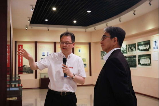After the meeting, the Japanese Ambassador to China, Mr.Tarumi Hideo, and the ministers of the Japanese Embassy in China, accompanied by Chairman,Board of Directors, Jiang Bo, visited Weizhi Library and the School History Museum of Peihua.