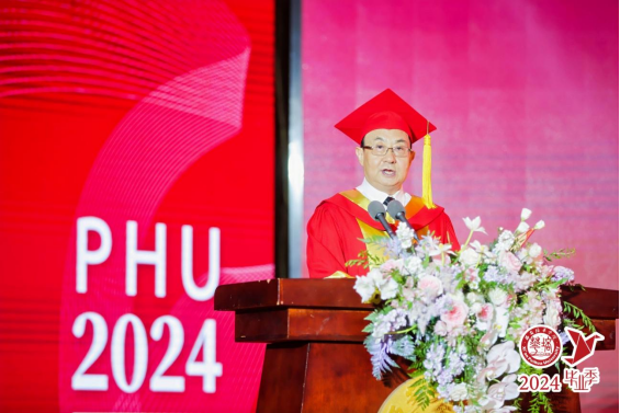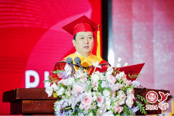 As the chairman of XPHU, Jiang Bo bid farewell to the graduates in a heartfelt manner. He recalled the stormy history of the school since its foundation and said that Peihua people have refused to "lie flat" at every important historical point and made many remarkable achievements. He said that all graduates should inherit the spirit of Peihua and write a new chapter of their lives with practical actions, without fear of difficulties; in the face of the coming of the AI era, he urged graduates to actively embrace the new technology and become composite talents with cross-disciplinary knowledge and skills; he also said that Peihua will always be the safe haven for alumni, and that no matter where they are going in the future, the school will continue to empower and provide lifelong services to each and every Peihua person.