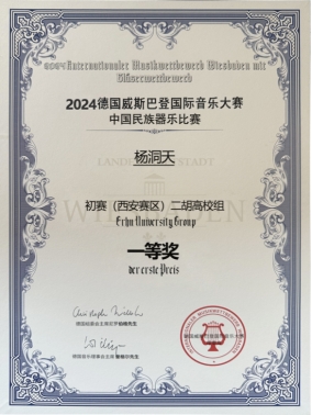 Recently, the 2024 Wiesbaden International Music Competition, jointly organized by the Wiesbaden Education Bureau, Wiesbaden Conservatory of Music, and Wiesbaden Music and Art School in Germany, was held in Xi’an. Xi’an Peihua University faculty member Lei Mengyingyi led the university’s student art troupe, consisting of students Liu Jiayun, Yang Pengfen, and Yang Dongtian, to participate in the competition. They achieved outstanding results, winning three first prizes in the university category for violin, guzheng, and erhu.