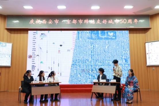 During the Sino-Japanese university student exchange session, three students from Kyoto Women's University, Kyoto University, and Doshisha University, along with three students from the 2021 cohort of Xi'an Peihua University, engaged in thematic presentations and exchanges on the topics of "Cuisine," "Scenic Spots," and "Culture." The entire session was conducted in Japanese.
