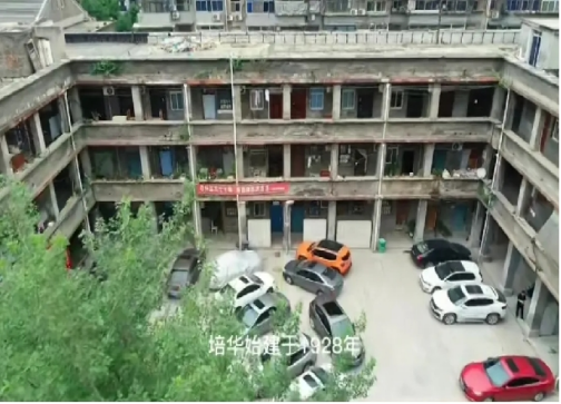 In Xi’an Peihua University’s 96-year history,ithas undergone“seven relocations and nine name changes.”However, one of its former campus teaching buildings still stands today and now serves as the North Building of Xi'an Central Hospital. In 1935, when the university was known as the“Shaanxi Provincial Private Peihua Women’s Junior Dyeing and Weaving Vocational School,”the Provincial Department of Education allocated 29.78 mu of land at Houzaimen as the school’s site. Renowned hydraulic engineer and thendirector of the Shaanxi Provincial Department of Construction, Li Yizhi, personally designed the architectural plans for the school buildings.