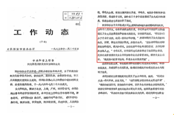 The 76th issue of the "Work Dynamics" of the Xi'an Municipal Party Committee in 1985 published the content of Comrade Xi Zhongxun's reception of the leaders of Peihua Women's University.