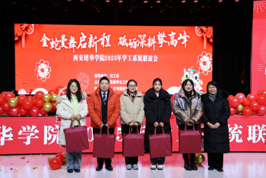The golden snake dance starts a new journey with greater heights. Guided by the University Labor Union, hosted by the Student Affairs Department and organized by the School of Humanities and International Education, the 2025 Student Affairs System Gala was successfully held on January 10. Vice President and Deputy Secretary of the Party Committee of Peihua University, Yao Wenjing, along with relevant leaders from the Student Potential Development Center, Admissions and Career Guidance Center, Student Affairs Department, and the Youth League Committee, gathered with the secretaries, deputy secretaries, and all counselors from the Party Committees (or General Party Branches) of secondary schools, as well as colleagues in student affairs system, to jointly create a grand event to bid farewell to the old year and welcome the new one.
