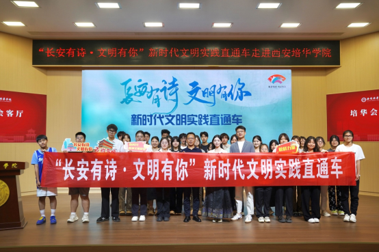 To consolidate the ideological foundation of the youth, stimulate the vitality of cultural inheritance, and practice the new trend of civilization practice in the new era, the “Chang’an Has Poetry, Civilization Has You” New Era Civilization Practice Express themed event was held on May 21st in the lecture hall of the Mingde Building at Xi’an Peihua University. The event was jointly organized by the Xi’an New Era Civilization Practice Guidance Center, the Civilization Office of the Chang’an District Committee, andHuashang Daily, and co-organized by the Publicity Department of the Party Committee and the Youth League Committee of Xi’an Peihua University. Using culture as a bridge, the event built a meaningful platform for dialogue, connecting the inheritance of civilization with youth-driven innovationand entrepreneurship—allowing the spirit of youth at Xi’an Peihua University to shine amid the wave of civilized progress.