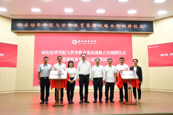 On the afternoon of May 16th, the unveiling ceremony for the strategic cooperation between Xi’an Peihua University and Shihua Education Group, along with Chairman Jiang Lanxin’s public welfare lecture, was successfully held in the Mingde Building Auditorium of Xi’an Peihua University. Through resource integration and complementary advantages, both parties have embarked on a new journey of industry-education integration and collaborative talent cultivation, injecting strong momentum for the high-quality development of higher education. Participants included Jiang Bo, Chairman of Xi’an Peihua University; Qin Haifeng, Assistant to the President; Liu Yu, Director of the Cooperative Development Center; Wu Wangyan, Dean of the School of Accounting and Finance; and Ding Yang, Vice Dean of the School of Accounting and Finance.
