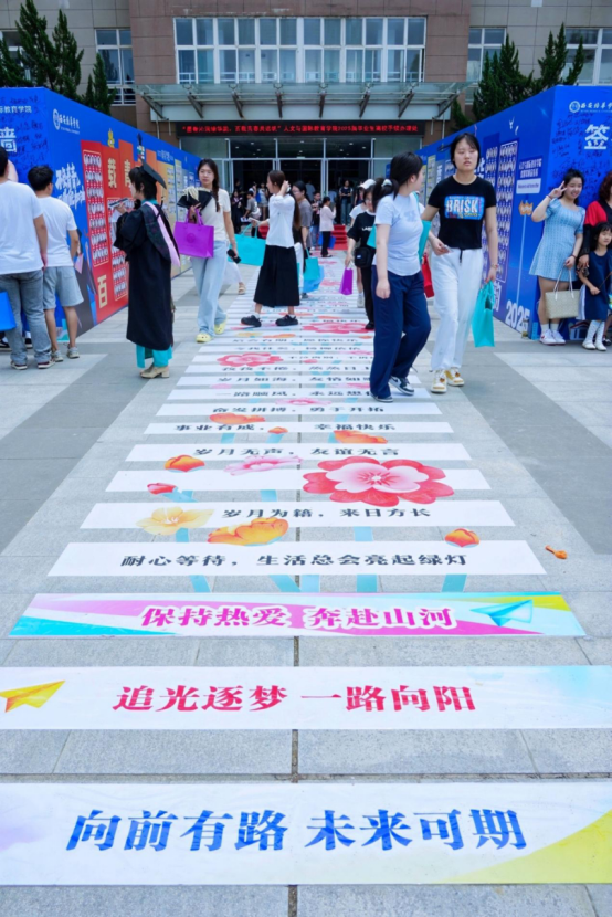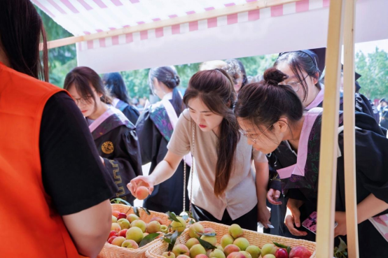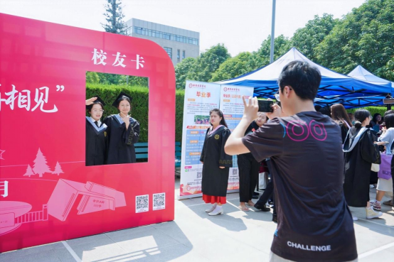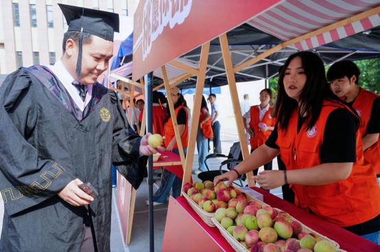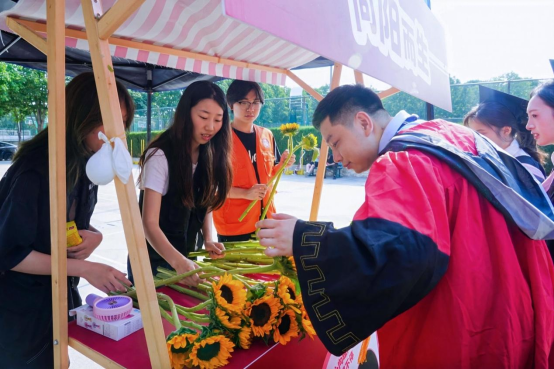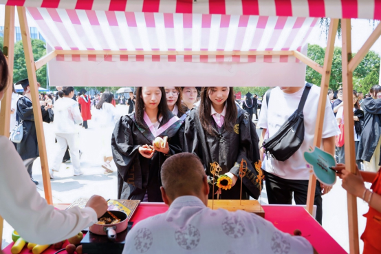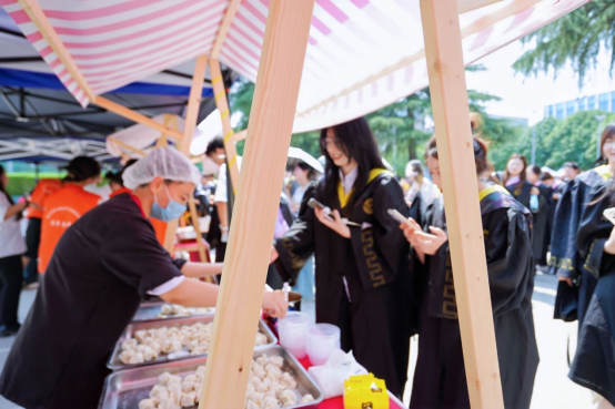 Outside the venue, the university set up a series of themed interactive graduation floats with names like “Born to Shine”, “Peachy Wishes”, “Sweet Journey Ahead”, “Lychees from Chang’an”, and “Dumpling Dreams”. These thoughtful installations offered warmth and blessings to the graduates, who eagerly gathered to take photos and capture memories of their special day.