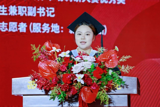 Li Jianle, a graduate of the School of Accounting and Finance and a volunteer for the Western Region Program, delivered a speech on behalf of the graduating class. She reflected on her four years at Peihua with gratitude for the university’s guidance and emphasized the importance of putting knowledge into action. Having been selected to serve in the 12th Division of the Xinjiang Production and Construction Corps, she will soon begin grassroots work in western China.She called on all graduates to carry forward the university motto—“Upholding the Reputation, Prioritizing Quality, Striving for Self-improvement, and Pioneering Forward”—and, like “dandelions”, take root where the country needs them most, allowing their youth to shine through service and dedication.