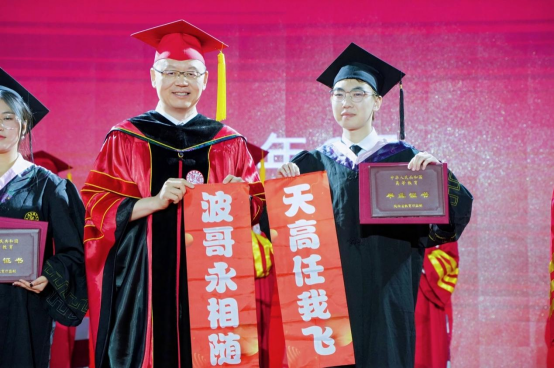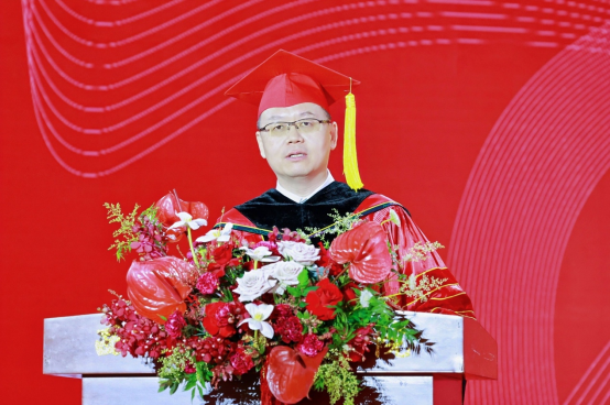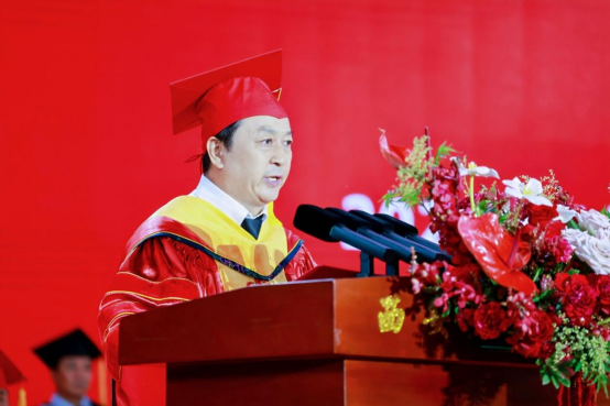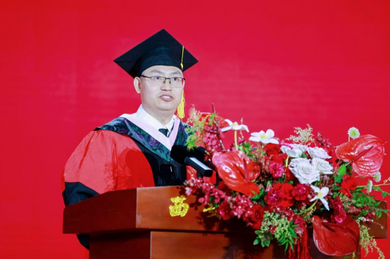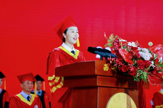 Luan Boqiang, Associate Dean of the School of Humanities and International Education, delivered a speech on behalf of the faculty. Through “Three Peihua Memories”, he guided the graduating class in revisiting their university journey, emphasizing that Peihua not only imparts knowledge, but also instills the lifelong values of “broad learning, critical inquiry, and steadfast practice”. He noted that the university has shaped its students with the spirit of “self-cultivation and benefiting others”—a defining hallmark of Peihua’s character. He encouraged graduates to become “seeds that grow deep roots”, “bridges that connect past and present”, and “lights that illuminate others”. He called upon the Class of 2025 to bravely embrace the mission of the era—“to serve a strong nation and strive for shared success”.
