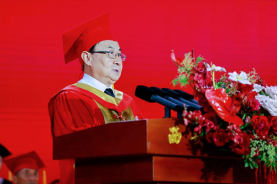 As the head of the Peihua family, Chairman Jiang Bo delivered a heartfelt and visionary speech—his final lesson to the graduating class. On behalf of the university, he congratulated all members of the Class of 2025 on successfully completing their studies, expressed his deep respect for the faculty and staff, and extended his sincere thanks to the families who supported the graduates along the way. Drawing on the stories of Peihua alumni from the 1950s who grew through their experiences at the grassroots level,he encouraged graduates to go where the country needs them most and to build their futures from the ground up. He offered four hopes for the graduating class. First, to prioritize moral character and learn to cherish.He encouraged them to be grateful to their parents for raising them, to care for their elders, and to be warm-hearted and responsible individuals.Second, to pursue lifelong learning and embrace innovation.He urged them not to be content with their current knowledge, but to keep up with national and global developments, continuously enhance their professional competence, and bravely break through to become versatile talents.Third, to value health and maintain vitality. As health is the foundation of happiness, he reminded them to treasure their physical and mental well-being in this fast-paced era and to stay positive and optimistic.Fourth, to stay down-to-earth and start from scratch. He advised them to set aside past achievements, face the future with a mindset of returning to zero and with firm conviction, and to grow through perseverance.At the end of his speech,he invited the graduates to return to their alma mater in 2028 to celebrate the university’s centennial together.