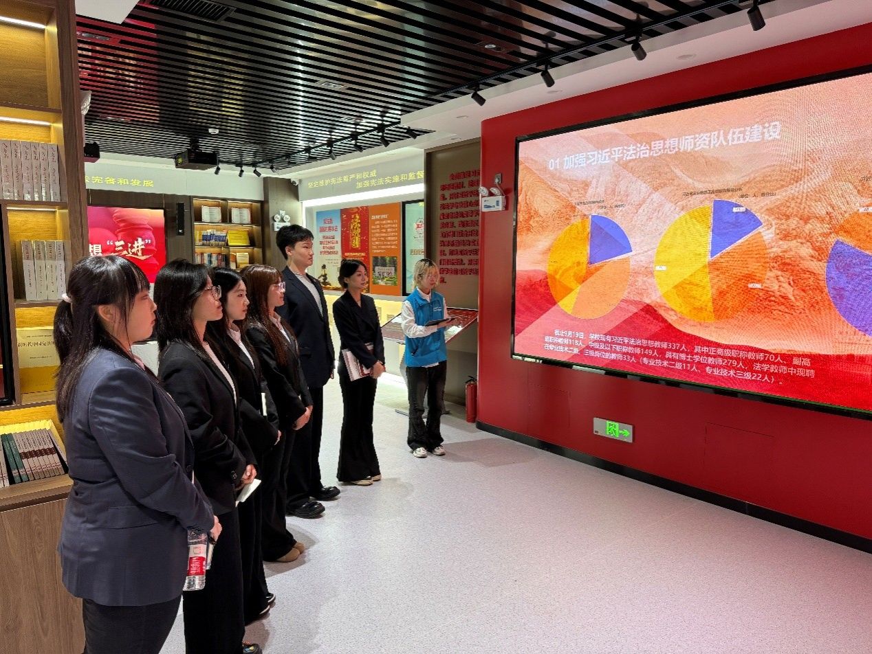 座谈会结束后,与会人员共同参观了西北政法大学校史馆、习近平法治思想 “三进” 成果展室,在历史回望与成果观摩中感悟法治传承、汲取育人经验。展厅通过图文展板、文献实物、多媒体影像、电子互动等多元形式,系统呈现习近平法治思想的形成脉络、核心要义与时代价值,集中展示学校推动习近平法治思想进教材、进课堂、进头脑的特色实践与育人成果。