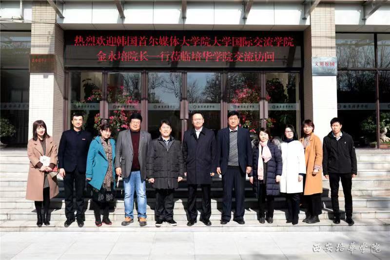 12月9日上午, 韩国首尔媒体大学院大学国际交流学院院长金永培、韩国首尔媒体大学院大学教授李倩、陕西省高等教育继续教育学会国际交流与合作工作委员会主任王晓地、西北大学中韩教育中心执行主任沈浤、西北大学中韩教育中心硕博项目负责人刘晋、西北大学中韩教育中心合作院校联络处杨丽菲一行莅临我校交流访问。我校姜波理事长、传媒学院杜耀峰院长、传媒学院王西娅常务副院长、国际交流中心王鹏主任、传媒学院赵伟副院长等领导及教师亲切接待了来宾一行。