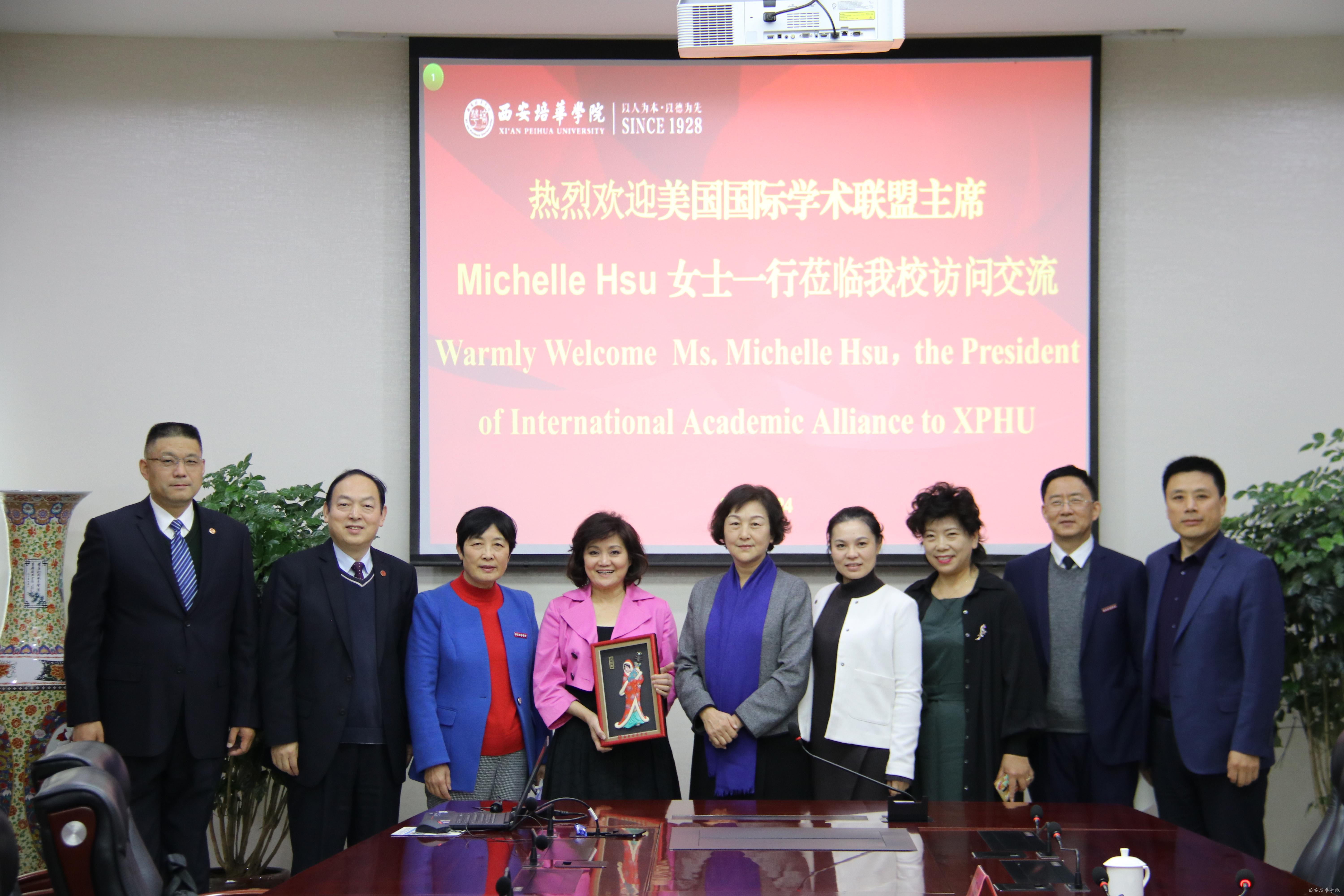 我校领导与来宾在第一会议室举行了会谈。刘越莲副校长致欢迎词,首先对Michelle Hsu主席一行到访培华表示热烈欢迎。刘副校长简要介绍了我校九十年历史沿革、学校概况、领导构成,并向来宾介绍了我校特色专业和国际化项目。