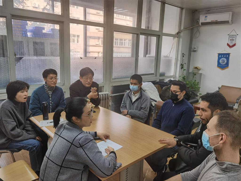 11月26日下午,国际交流中心召开了外籍教师管理工作会议,根据当前涉外工作规定和形势,针对思想意识形态、安全与稳定、疫情与健康保健、教学评估与反馈等工作提出新的要求,与专业对接人及外籍教师们进行了交流讨论。