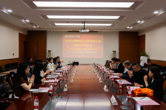 9月19日下午,德国橙色人才集团创始人、总经理,德国橙色人才护理学校校长Frank博士、德国橙色人才公司亚洲业务主管任彤博士、中德护理项目中国区培训部负责人李阳等代表莅临培华交流访问,参观学校医学院并面向护理专业学生开展了赴德护士资助项目的宣讲会。我校刘越莲副校长、国际交流中心主任王鹏、医学院常务副院长扈国栋、医学院副院长王菊宁、医学院护理系副主任李安琪及护理系骨干教师出席了座谈会,国际交流中心主任王鹏主持座谈会。
