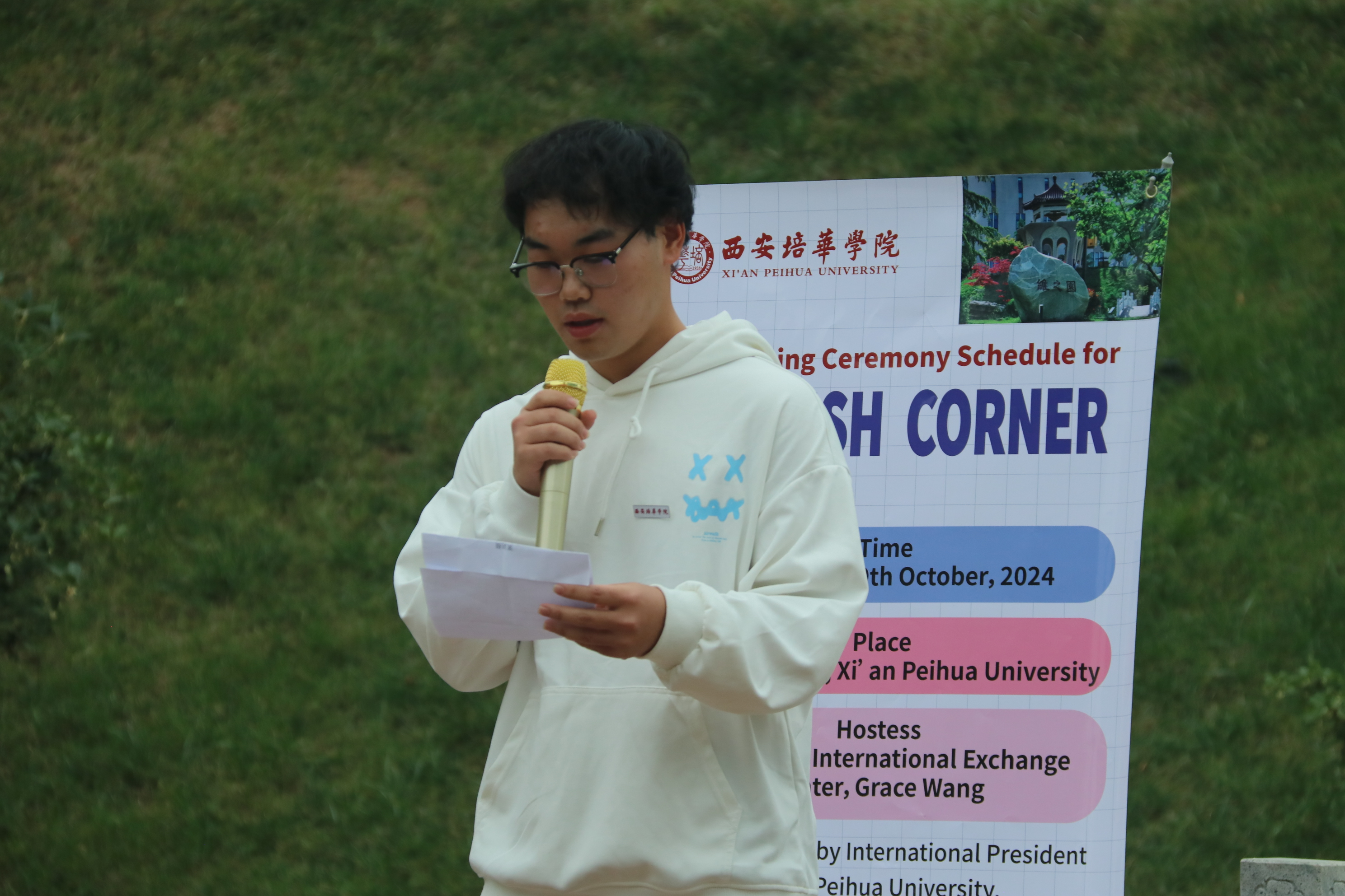 Student representative,Xu Zhaoxiang expressed that the English corner can not only enhance students' communication skills, but also serves as a platform for building cross-border friendship. He called on the students to actively participate in the English corner activities and contribute to building Xi 'an Peihua University into an international university.