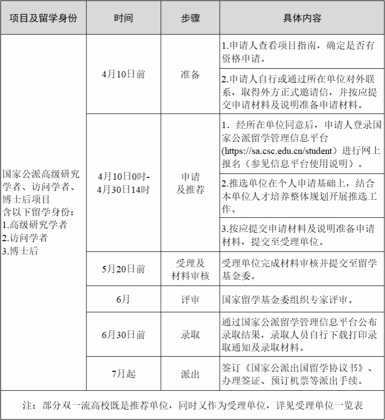留学期限应根据拟留学单位的正式邀请信中列明的留学时间确定,个人申报的资助期限应不超过留学期限(一般与留学期限一致)。具体留学期限及资助期限在录取时确定,以录取文件为准。