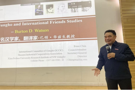 随后,秦教授从问题导入,先向大家介绍了其研究领域和开设此次讲座的初衷,然后详细介绍了巴顿·华兹生以及其与西安培华学院的渊源。巴顿·华兹生的翻译成就,涵盖了中国哲学、佛学、史学等方面,尤其对史记、左传、庄子、法华经等作品的翻译令人称赞。秦教授通过巴顿·华兹生的讣告词,生动有趣地向老师和同学们进一步说明了这位学者丰富的个人经历和艺术成就,包括参军,在哥伦比亚大学学习中文,从事笔译研究的经历,去日本当外教,对寒山诗的翻译,以及其对国外的深远影响等。秦教授引用华兹生几篇比较有名的翻译,将其与许渊冲、林语堂等翻译大师进行对比,强调了华兹生在翻译界的重要地位。华兹生曾受西安培华学院邀请参与过学校的活动,我校领导也出席了这位培华之友的国际研讨会等。