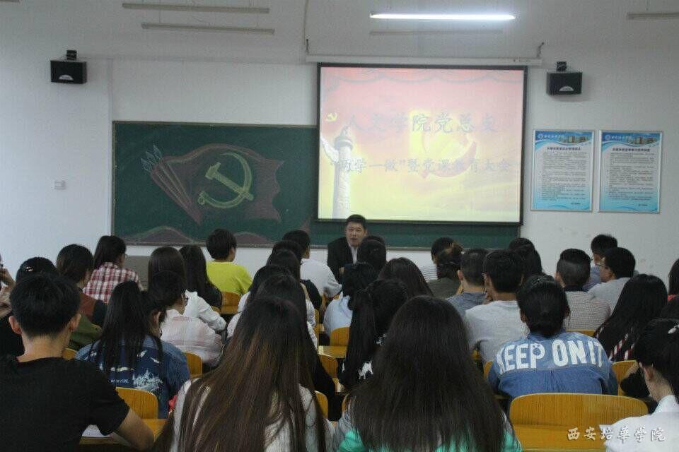 9月21日下午,我院在汇知楼6516教室召开近期做好学习“两学一做”专题党课暨学习教育部署会。我院党总支副书记蔡亮以《扎实开展“两学一做”学习教育 深入推进基层党组织建设与发展》为题为我院学生党员代表和积极分子代表上专题党课,并就我院深入开展“两学一做”学习教育作了阶段部署。