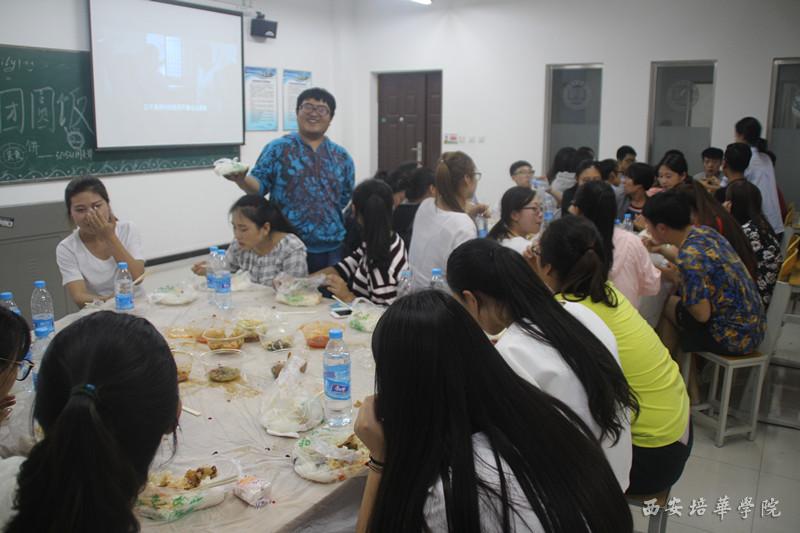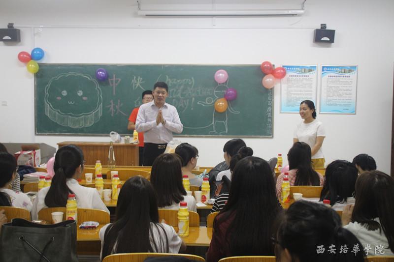 虽然每个班的庆祝方式不同,所包含的祝福却是相同的。有的班级以看电影的方式庆祝,有的以晚会形式进行,有的以聚餐方式团聚。在班会进行之中,党总支副书记蔡亮、团总支书记唐璠以及生活生涯导师成丽亲自到班级送上祝福,唐璠老师还为大家带来精彩的节目。