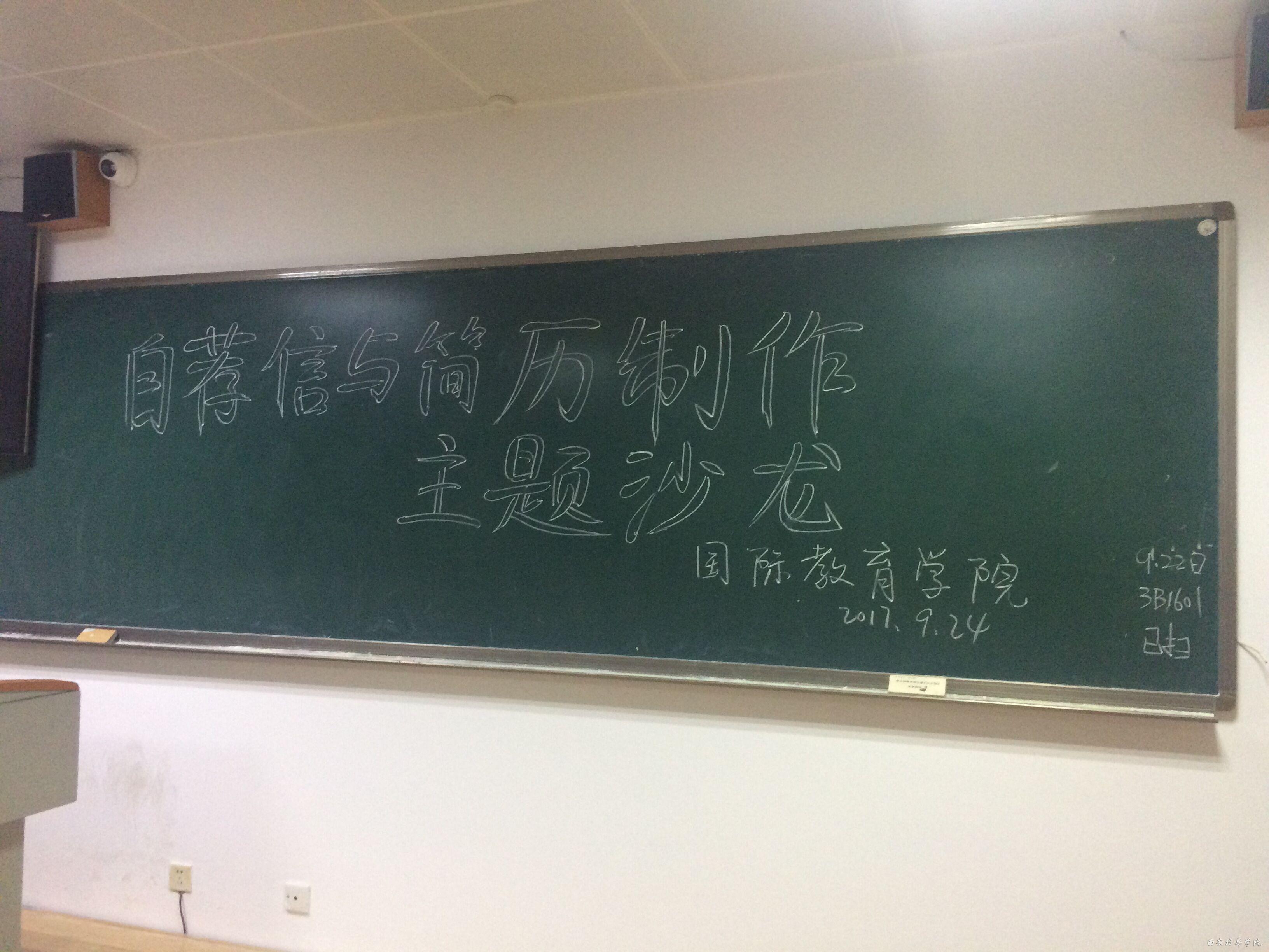 2017年9月24日晚,国际教育学院辅导员张亚莉老师在我校格物楼1301教室组织2018届毕业生89人,进行自荐信与简历制作及求职面试指导。指导的内容围绕现代大学毕业生关注的“如何写出令招聘单位满意的简历”和“怎样在面试中表现出众”两个核心问题。