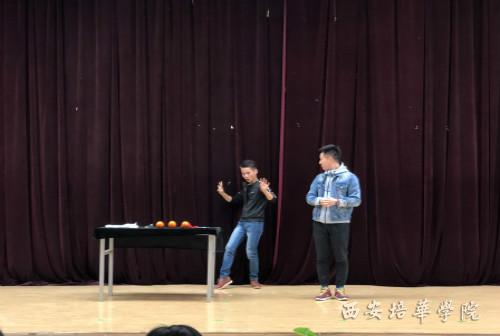 第二位分享人是我院法学专业大三学生徐彪。徐彪同学是陕西省杂技艺术家协会会员,国家级非物质文化遗产周化一魔术传承艺术委员会委员,陕西省杂技艺术家协会官微主编,共青团西安培华学院委员会委员,西安市实验小学魔术社团指导老师,陕西省高校魔术联盟创始人、现任秘书长。徐彪同学进行了自己故事的分享,他认为技术是第二位的,而耐心,责任心才是重要的。创始人是什么样的人,这个社团就是什么样。同时也指出加入一个组织不在于能从中学到什么而是在于你能为其带来什么。最后,徐彪同学也为在场的同学带来了精彩的魔术表演,将交流会氛围推入高潮。