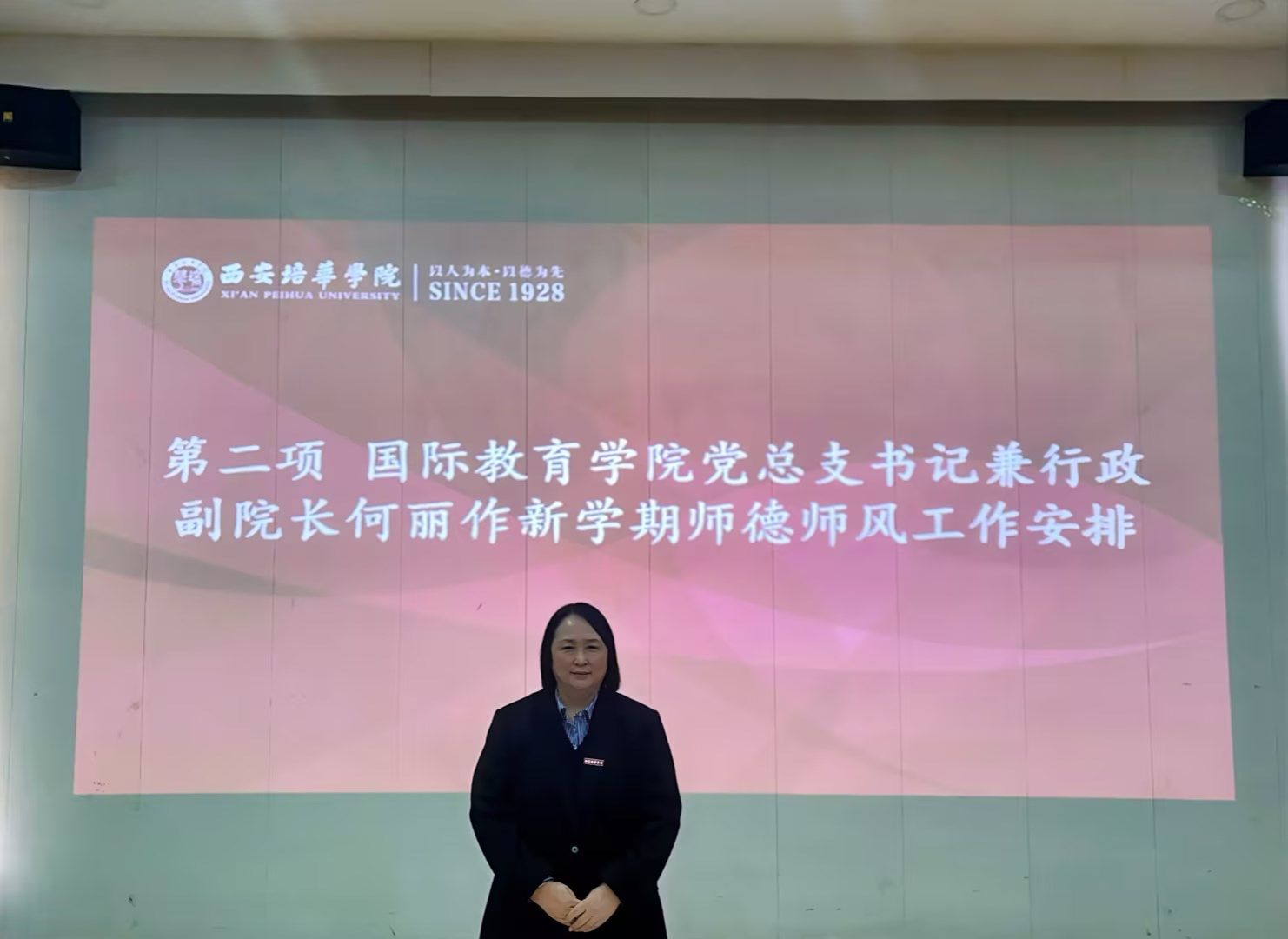 随后,党总支书记兼行政副院长何丽就新学期党建引领、师德师风、学生工作、意识形态、党风廉政、行政管理、纪律作风、服务保障、安全稳定、四大保障体系等工作进行安排部署,并对全体教职工提出明确工作要求。她指出:要强化党建引领,筑牢政治根基,全面加强师德师风建设。抓实学生工作,落实立德树人根本任务,以优良师德师风引领学生成长成才。最后要求全体教职工提高政治站位,牢记为党育人、为国育才使命,将师德要求融入育人全过程,抓实抓细各项工作。