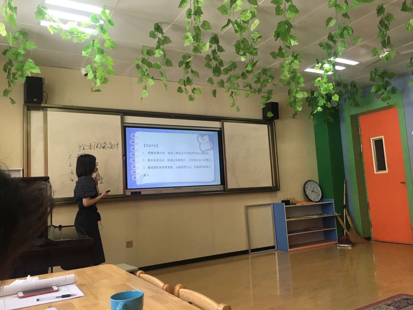 蒙丽媛老师汇报课的内容是选自《学前儿童社会教育》中的学前儿童社会环境与规范教育活动的设计与实施。蒙老师重点讲述了社会环境与规则教育活动的设计原则,从内容需符合幼儿年龄特征、教育活动有针对性、内容选择遵循幼儿兴趣和需求、选择正面社会现象以及重视参观、游览等教育方式来设计。