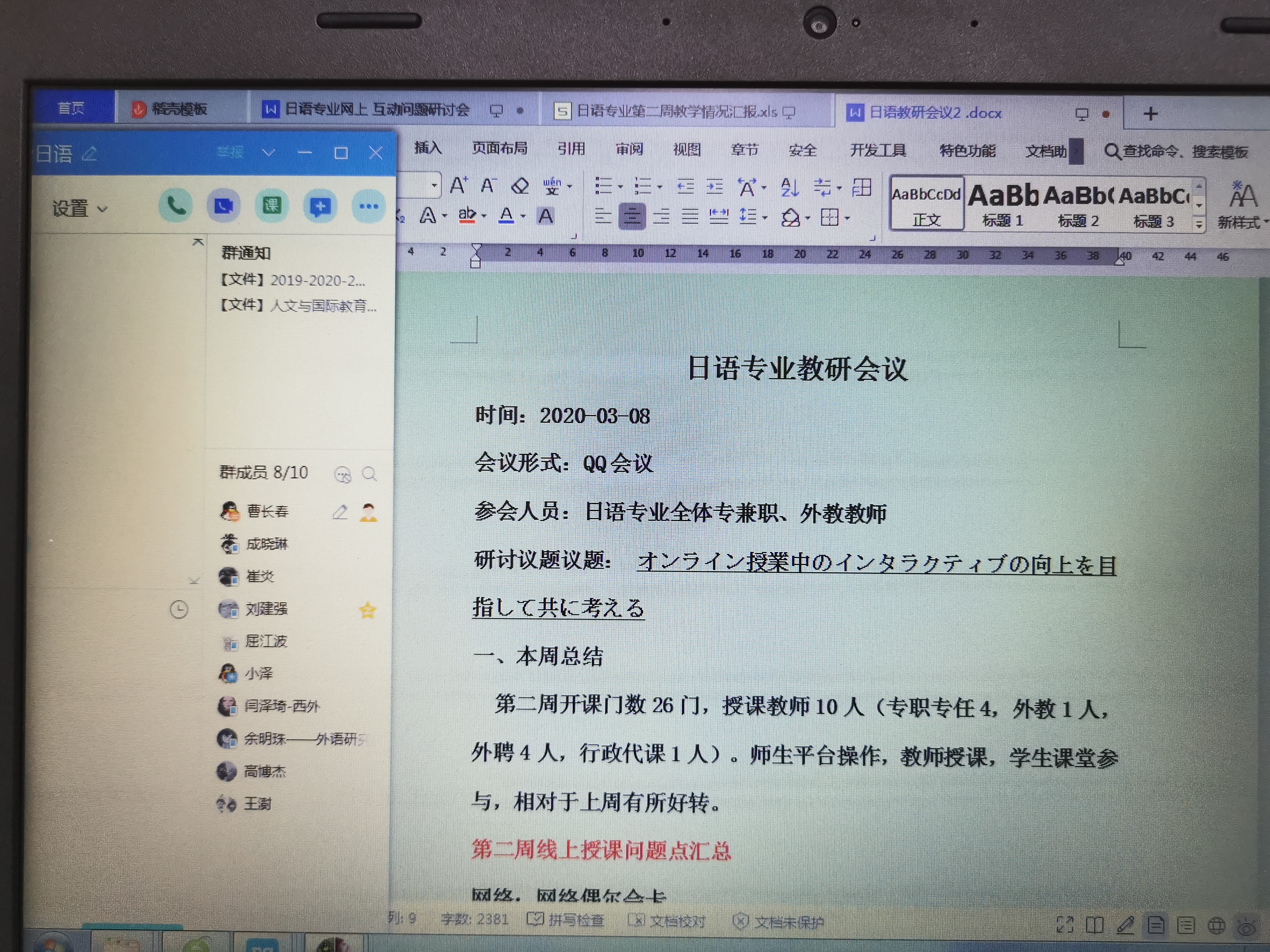 2020年3月8日上午9时,日语专业在QQ群召集了开学实施线上教学以来全体任课教师的第二次总结报告暨教学研讨会。