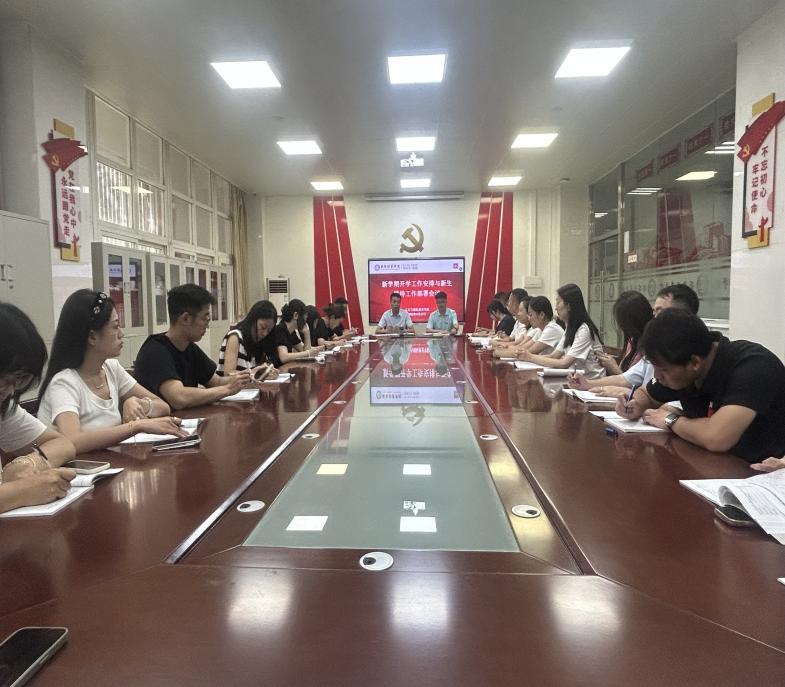 8 月 27 日上午 9 点,人文与国际教育学院于格物楼会议室召开新学期学生工作部署会,学院党委书记兼副院长南兵、党委副书记王伟平及全体辅导员参会。