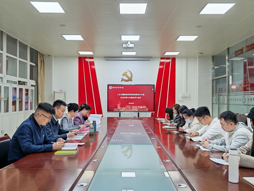 2025年9月22日下午,人文与国际教育学院党委理论中心组第七次集体学习会议在格物楼第四会议室召开。本次学习主要围绕近期习近平总书记重要讲话以及纪念中国人民抗日战争暨世界反法西斯战争胜利80周年相关内容展开。会议由学院党委书记南兵主持,学院党委委员、各支部书记、专(兼)职党务干事参加了学习。