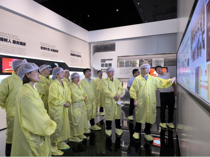 会前,在2023年度国家科技进步一等奖获得者马晓华教授陪同介绍下,参观了中心超净工艺线、科学家精神教育基地,了解其发展历程、技术成果等,围绕科技创新成果、产学研融合发展等进行了深入交流。