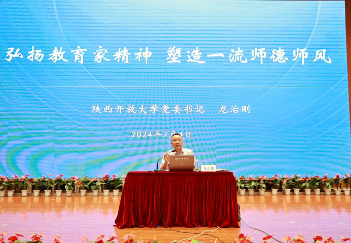 为深入学习宣传贯彻党的二十大精神和习近平总书记关于大力弘扬教育家精神的重要指示,以教育家精神引领高素质教师队伍建设,引导全体教职工深入理解教育家精神的内涵,将其融入日常教育教学工作中,推动学校教育事业的高质量发展。2024年7月4日下午,党委教师工作部联合教师教学发展中心,在图书馆报告厅举办了以“弘扬教育家精神,塑造一流师德师风”为主题的师德师风专题培训活动。本次培训特邀陕西开放大学党委书记龙治刚担任主讲嘉宾,西安培华学院党委书记刘锋主持讲座,全校300余名教职工参加本次活动。