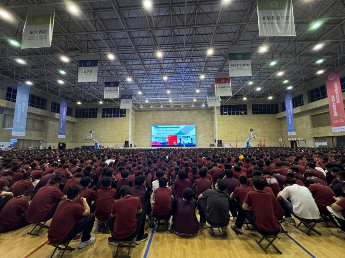 周强老师随后介绍了体育学院的基本情况,重点阐述了“一院两品一特色”项目,即篮球、花样跳绳、射箭。这些项目不仅丰富了同学们的课余生活,还提供了展示自我的平台。周强老师的介绍让新生们对学院的体育特色有了更深入的了解,也为他们未来的体育学习和发展提供了更多的选择。