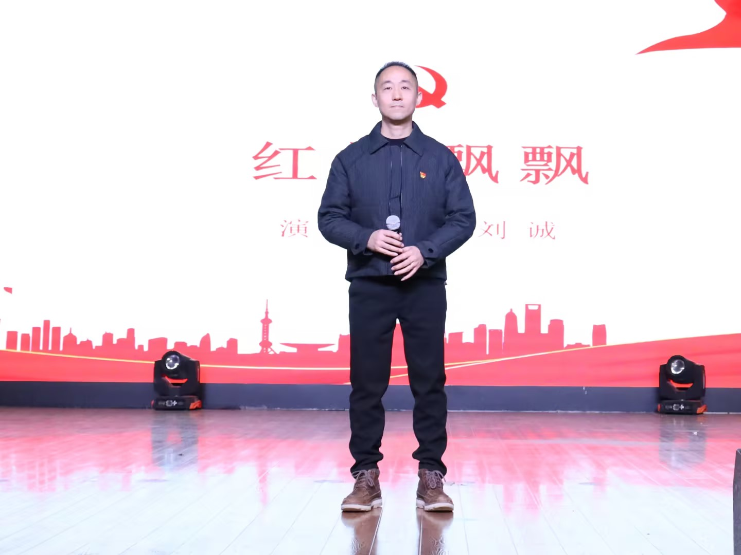 社区党员刘诚独唱《红旗飘飘》,歌声激昂,情感真挚,表达了对祖国的热爱与忠诚。