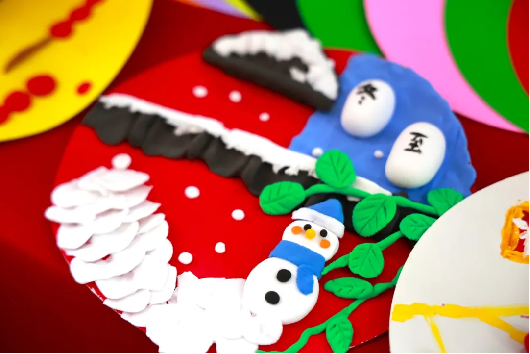 “彩绘冬景黏土创意工坊”里,同学们用双手将一块块普通的黏土变成了栩栩如生的冬日景象。